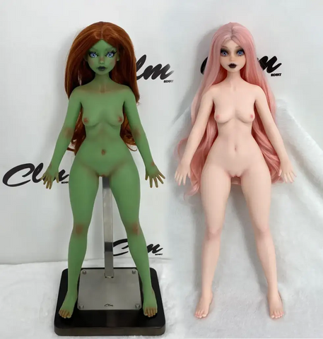 Hilary, eine 60 cm große Miniatur-Sexpuppe, besticht auf den ersten Blick durch ihr verstörend realistisches Gesicht, das durch rauchiges Make-up hervorgehoben wird, das ihr ein unwiderstehlich freches Aussehen verleiht.
