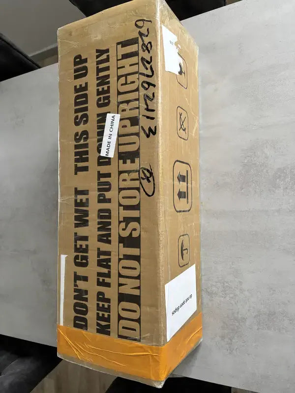 A protective film and expanding foam hold everything securely in place to prevent any movement during transport. Large warnings on the box remind customers to handle the package with care—a detail that demonstrates the respect shown for the product.