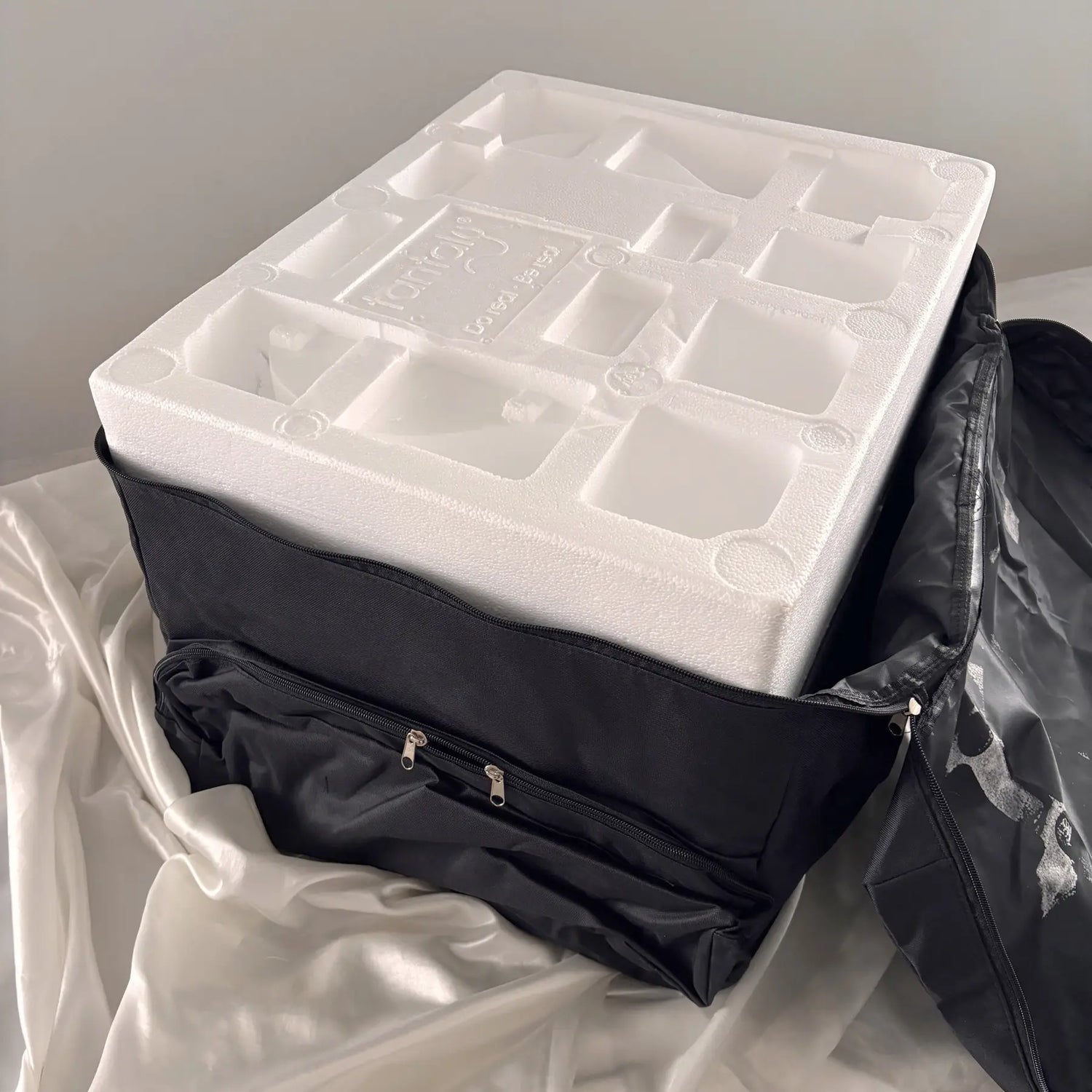 Derrière son apparence massive et assumée, Daisy Plus arrive dans un sac noir discret, sobre et robuste, protégée par l'emballage classique orange de Tantaly. Le tissu est épais, les anses bien renforcées, pensées pour supporter le poids sans faiblir. La fermeture éclair est fluide, rassurante, et inspire immédiatement confiance. Rien d’ostentatoire ici : tout est conçu pour une livraison discrète, fiable et sans surprise.